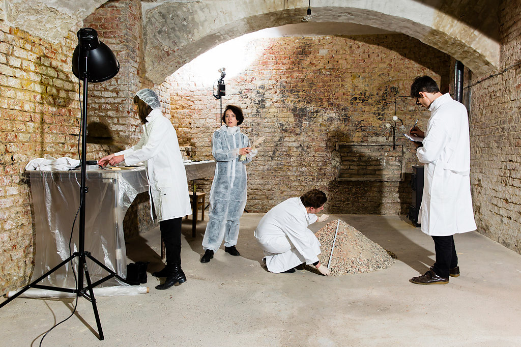 Das Projekt untersucht, unter welchen Bedingungen institutionskritische und prozessbasierte Kunst am historischen Schauplatz des Kellerateliers der Wiener Aktionisten ausgestellt werden kann. Das Kollektiv U+ wählte dafür einen wissenschaftlich-distanzierenden Ansatz: Materialproben des Raums – insbesondere Putzfragmente – wurden gesammelt, präpariert und mikroskopisch untersucht. Diese archäologisch anmutende Vorgehensweise hinterfragt den Objektstatus, die Wertzuschreibung und die konservatorische Logik institutioneller Pflege. Gleichzeitig wurde die Fotografie in ihren verschiedenen Funktionen – dokumentarisch, wissenschaftlich, phänomenologisch und ökonomisch – reflektiert und sichtbar gemacht. Die Arbeit eröffnet einen kritischen Blick auf die sozialen, historischen und medialen Prozesse, die künstlerische Praxis erst ermöglichen und ausstellbar machen.