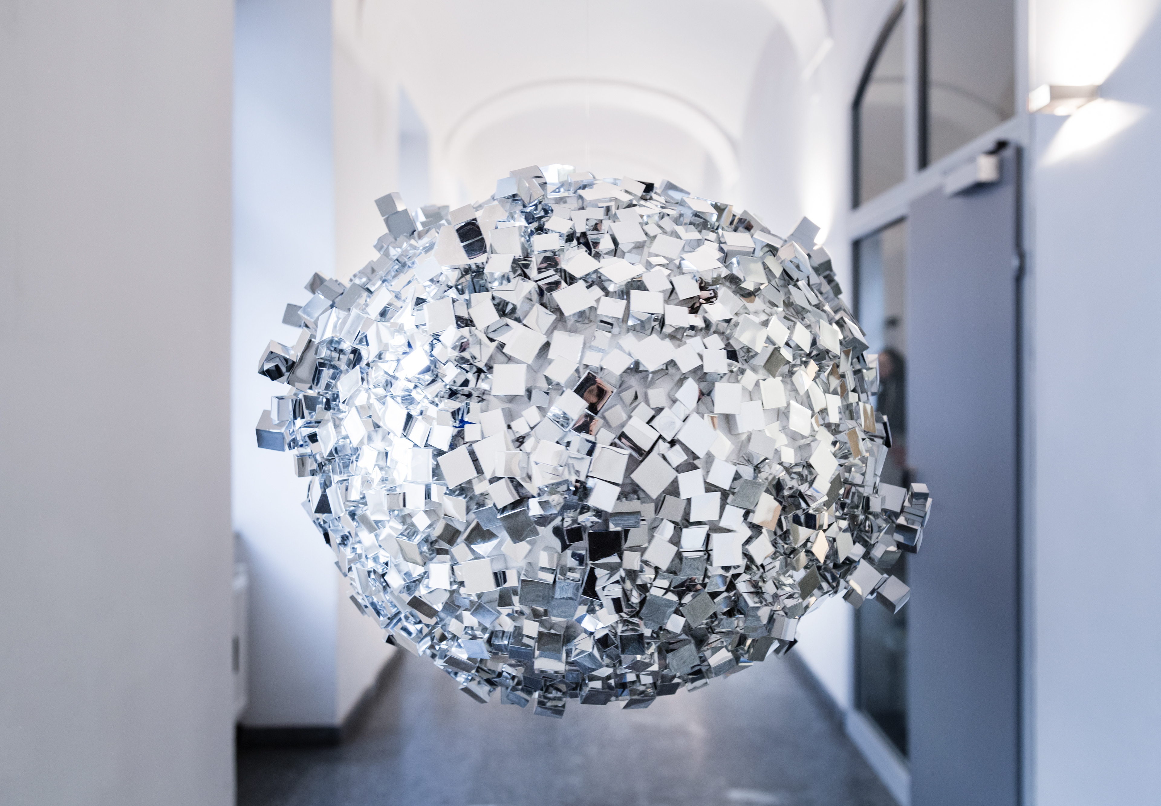 Das Projekt untersucht die erdnahe Umlaufbahn LEO (Low Earth Orbit) als Schnittstelle zwischen technologischer Überwachung, globaler Datenzirkulation und menschlicher Selbstwahrnehmung. Ausgangspunkt ist die historische Entwicklung seit Sputnik 1957 und die Verdichtung von Satelliten, Informationen und Weltraumschrott. Spiegelnde, kubische Objektassemblagen verweisen auf die Reflexionen und Datenübertragungen der Satelliten, die Ballungsräume kartieren, beobachten und kontrollieren. Die Installation thematisiert Informationsüberlagerungen, Abhängigkeit von orbitaler Infrastruktur und die Verschiebung unseres Blicks auf Himmel und Erde.