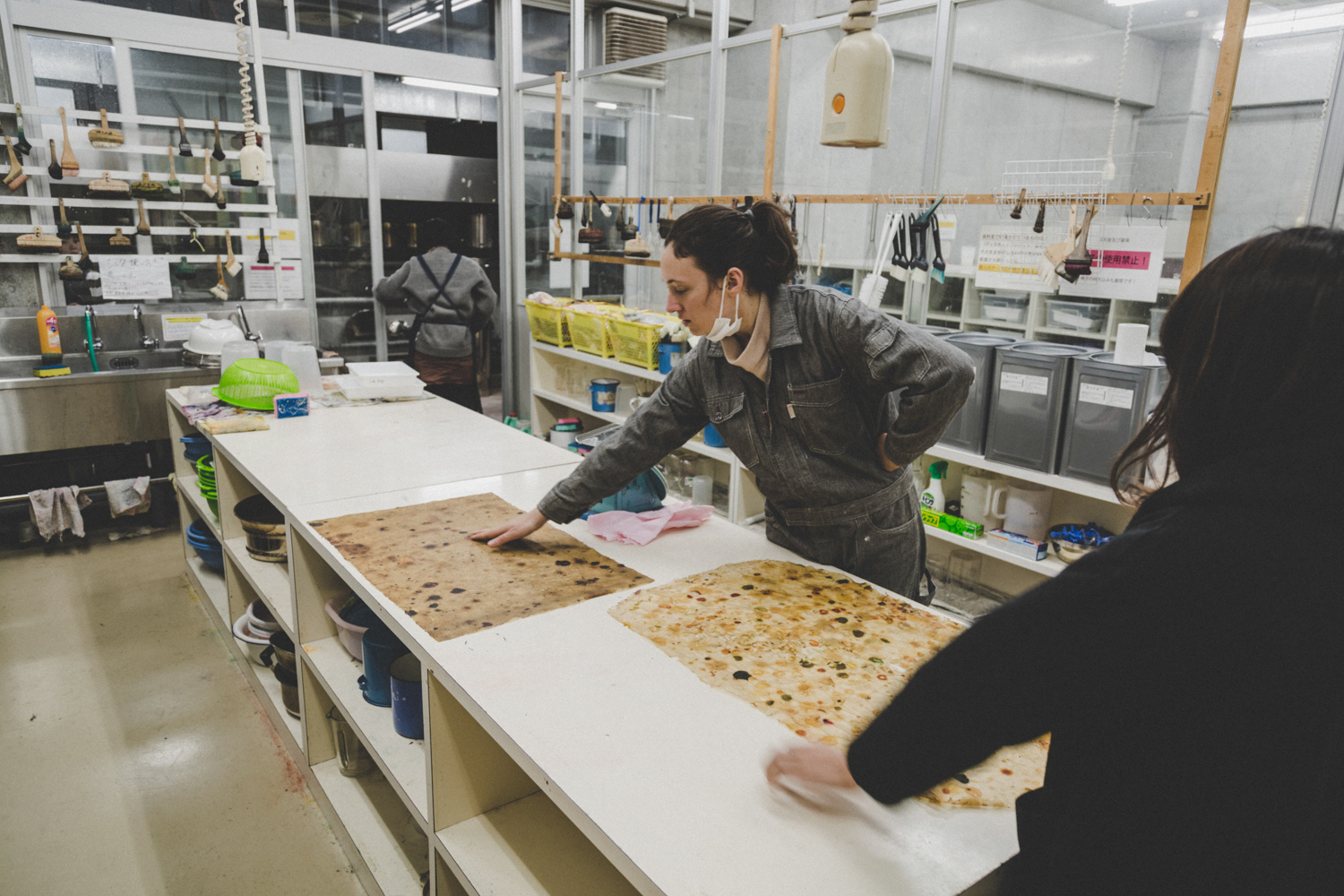 Die dreiteilige Installation untersucht Transformation, Identität und verkörpertes Wissen anhand eines organisch gewachsenen Kombucha-Materials, das während einer Japan-Residenz als forschendes Medium eingesetzt wurde. Durch Indigo-Färbung, Trocknung und Beleuchtung entsteht ein lebendiges Gefüge, das innere Zustände, kulturelle Einflüsse und biologische Prozesse sichtbar macht. Der Raum verbindet Licht, Materialoberflächen und fragmentarische Notizen zu einem offenen Erkenntnisfeld. Die Arbeit thematisiert Instabilität, Übergänge und die Beziehung zwischen körperlichem Empfinden und materieller Form.